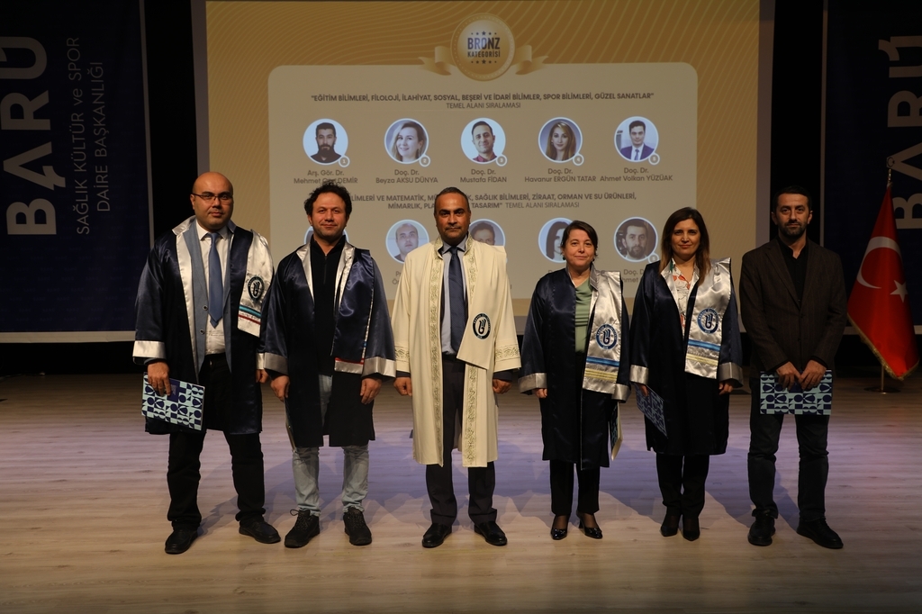 Bartın Üniversitesinde (BARÜ), akademik yükselme, bilimsel yayın, proje ve inovasyon alanlarında üstün başarı gösteren akademisyenler için her yıl geleneksel olarak düzenlenen “Akademik Giysi ve Akademik Performans Ödül Töreni”, bu yıl da gerçekleştirildi. Törende, üniversitemize ve bilime sundukları nitelikli katkılarla öne çıkan akademisyenler ödüllendirildi.